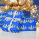 Spruce tree covered by snow. Winter festive motif on royal deep vivid blue coloured background.
