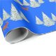 Festive Brown Deer under Snowy Spruce Trees Blue Wrapping Paper