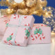 This adorable holiday-themed pattern features candy canes arranged in the shape of hearts, adorned with green bows. Set against a light pink background sprinkled with delicate snowflakes and dots, the design creates a whimsical and festive mood. The repeating motifs bring together elements of love and Christmas spirit in a charming, playful way.