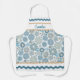 Pretty and modern apron with a winter holiday season decorative light, pastel, and dark blue coloured floral snowflake pattern design. With room to personalise or customise with a name, or short text, of your choice. Unique, pretty, decorative, fashionable, and trendy birthday or Christmas gift for your loved ones, kids, friends, or other family members who love to cook or tinker around in the kitchen.