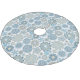 Pretty Christmas tree skirt with a decorative light, pastel, and dark blue coloured floral snowflake pattern design.
