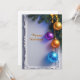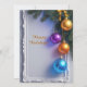 Festive Christmas design featuring an ornate frame, colourful baubles, and evergreen branches. Perfect for seasonal decorations, holiday invitations, or festive greetings.