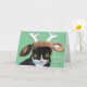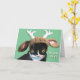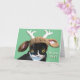 Funny Christmas Holiday Greeting Card with a black cat wearing reindeer antlers