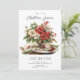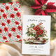 Our Christmas dinner invitation features an elegant holiday dinner place setting and a beautiful red poinsettia floral arrangement . The invitation is simple and elegant, with a white background and black text.