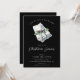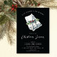Our Christmas dinner invitation features an elegant holiday dinner place setting and green holly with the saying "eat, drink & be merry" The invitation is simple and elegant, with a black background and white text.