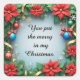 Colourful Christmas-themed background featuring a decorative border of poinsettias, golden accents, and hanging ornaments on a gradient backdrop, ideal for holiday greeting cards and celebratory designs.