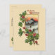 Festive Christmas Holly and Rustic Winter Scene Postcard