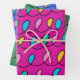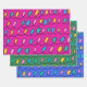 This whimsical holiday design features three different coloured backgrounds behind the festive Christmas lights. The colours are pink, green and blue and all can be easily changed. Perfect for wrapping christmas presents.