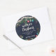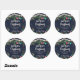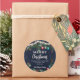 This Christmas sticker features a classic and festive holiday design with pine branches adorned with ornaments, pinecones, white berries, and candy canes. Set against a rich dark navy blue background with delicate snowfall accents, the sticker includes a personalised message of "Merry Christmas" and warm holiday wishes. The circular format makes it perfect for adding a charming touch to gift wrapping, envelopes, or holiday party favours.