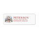 These awesome return address labels with a festive home in winter with snow and Christmas decorations, your last name and address in red will make addressing your Christmas moving cards just that much easier! They are so easy to just stick on the envelope! The font is crisp and clean making them look modern yet traditional. It is so easy to make these your own. Simply select Personalise this template and type in your family name and your address. It's that easy!