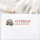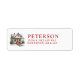 These awesome return address labels with a festive home in winter with snow and Christmas decorations, your last name and address in red will make addressing your Christmas moving cards just that much easier! They are so easy to just stick on the envelope! The font is crisp and clean making them look modern yet traditional. It is so easy to make these your own. Simply select Personalise this template and type in your family name and your address. It's that easy!