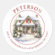 These awesome return address labels with a festive home in winter with snow and Christmas decorations, your last name and address in red will make addressing your Christmas moving cards just that much easier! They are so easy to just stick on the envelope! The font is crisp and clean making them look modern yet traditional. It is so easy to make these your own. Simply select Personalise this template and type in your family name and your address. It's that easy!