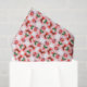 Festive Christmas pattern featuring red stockings, holly leaves, berries, and snowflakes.