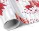 The background features grey and white stripes, with a red and white poinsettia next to a red candle topped with white glitter drips.