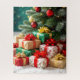 A festive holiday puzzle featuring beautifully wrapped Christmas presents under a sparkling tree with glowing ornaments and cosy winter charm. Perfect for celebrating the season and bringing families together for hours of fun. The number of pieces and puzzle size can be customised to any of the other rectangular sizes offered, making it ideal for puzzlers of all ages and skill levels.