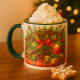 This festive, holiday-themed mug features a Christmas arrangement with a red bow and tartan plaid accents. While shown with a green handle, various colour options are available to personalise this coffee mug to your liking.