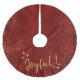 Decorate for the Holidays with this bright, festive Dark Red Tree Skirt decorated in Gold Coloured star dust, with text: Joyful!