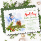 This holidays design features a watercolor snowman with pine tree branch, holly and pine cone, with your custom event type (shown with "Holiday Cookie Exchange") in chic red and green calligraphy script lettering. Personalised with your Christmas party details by editing the text boxes provided.