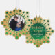 A charming, whimsical Christmas and winter holiday design with an elegant magic and ethereal aesthetic. A dark green background with a soft textured watercolor feel overlayed with brilliant gold stars and details. Give this as a card and continue to enjoy it year after year as a beautiful holiday decoration and Christmas ornament. --> NOTES: Customise the names and year on the back and the photo on the front. The words "Holiday Magic" cannot be changed. This is not a foil card—one photo layout.