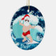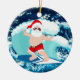 Festive Christmas surfing Santa add sentiment Ceramic Ornament