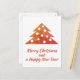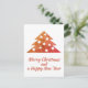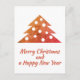 Festive and Simple Christmas Tree Merry Christmas and a Happy New Year Script Holiday Postcard. The colours are festive red, orange and golden.
