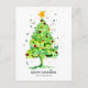 A fun, bright pine Christmas tree with coloured baubles. Hand painted using watercolor with a bright yellow star at the top.