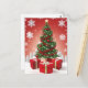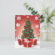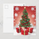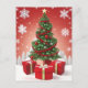 A decorated Christmas tree is surrounded by red wrapped presents, festive ornaments, and snowflakes, evoking the joyous and cosy holiday spirit during the winter season.