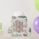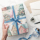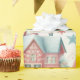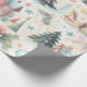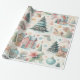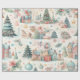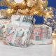 Bright and cheerful, the wrapping paper showcases a delightful array of Christmas motifs, including decorated trees, colourful gifts, and charming houses. The soft pastel colours create a whimsical feeling, perfect for the holiday season.