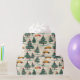 Decorative wrapping paper featuring cheerful Christmas trees adorned with ornaments, star toppers, and colourful vintage cars, capturing the spirit of the holiday season in a whimsical design.