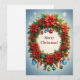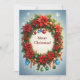 Bright and cheerful Christmas wreath adorned with vibrant poinsettias, glittering ornaments, snowflakes, and ribbons on a warm soft background symbolising holiday joy and celebrations.