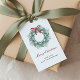 Classic style Christmas gift tags featuring festive Christmas wreath with personalized family name.