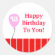 Festive Round Sticker with pink balloon on the left is ideal to stick around for any birthday celebration and is available in 2 sizes. It can also be used as labels on the envelopes of your birthday cards. Customise by adding your own text and adding the age of the person and this will automatically appear on the pink balloon on the left!