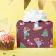 Festive Dogs IceSkating Pattern Dark Red Wrapping Paper
