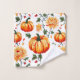 Towel set in a fall-themed pattern featuring vibrant orange pumpkins intertwined with blooming chrysanthemums in warm yellow and orange hues, creating a festive harvest-inspired design