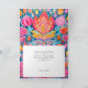 The card's background is awash in a brilliant cyan hue that immediately catches the eye. This vibrant backdrop sets the stage for the artistic extravaganza that unfolds within. In the centre of the card, a reimagined religious scene takes form, blending traditional elements with a fresh, contemporary perspective. The deity is adorned with a vivid pink halo, and the entire scene is illuminated with a radiant, golden light.