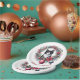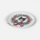 If you love cats and Christmas, you will love this design on paper plates. It features a cute black and white kitten sitting in a wreath of Christmas decorations. The wreath is made up of pine branches, and red flowers and ornaments. This design is perfect for cat lovers and is great for the holiday season.