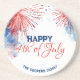 Festive Fireworks Happy 4th of July Custom Name Coaster