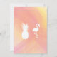 Set the vibrant mood for your next party with this bright and eye catching invitation featuring flamingoes, pineapples.