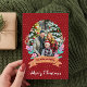 Festive Floral Wreath Christmas Red Photo Holiday Card