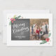 Add an extra festive touch to your holiday greetings with this 1-photo card, featuring hand lettered calligraphy artwork and hand drawn foliage, all on a trendy chalkboard background.