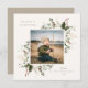 Festive Holiday Botanical Foliage Frame, flat photo card. Features, neutral beige colour typography and matching solid colour backing.