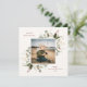 Festive Holiday Botanical Foliage Frame, flat photo card. Features, rustic red colour typography and matching solid colour backing.