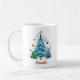 Festive folklor art Christmas trees monogram mug. Celebrate the magical and festive holiday season with this beautiful cute custom holiday mug design featuring a beautiful floral folkloric Christmas trees colourful design. Personalise this festive mug with a first name or other custom text. Makes a fun holiday gift for any girl, kids, grandchildren, family and friends!