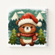 A joyful Santa Bear stands warmly dressed in his classic red suit, surrounded by a forest of twinkling Christmas trees dusted with fresh snow. The hand-drawn trees sparkle with delicate ornaments, golden stars, and soft string lights, creating a magical woodland holiday scene. The bear's cosy expression and soft textures radiate warmth and cheer, while the snowy ground and gentle falling flakes complete the winter wonderland. A harmonious blend of deep greens, snowy whites, and festive reds brings a storybook quality to the design—perfect for sparking imagination and Christmas joy in young hearts.
