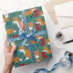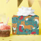 Wrap up Christmas gifts and spread holiday cheer with this cute wrapping paper that features illustrations of adorably festive foxes wearing Santa hats and Christmas wreaths and carrying ornaments and Christmas stockings. The illustrations are set against a dark teal background and accented with holly leaves and berries, tree ornaments and white snowflakes dots.