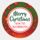 Sticker holiday gift tags with a red and green festive fractal background. The "Merry Christmas" greeting and family it is from can be changed.