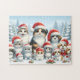Spread the warmth of the season with our "Festive Furballs" Christmas card! This heartwarming illustration captures the joyous spirits of adorable puppies and kittens donning festive Santa hats as they play in a soft snowy scene. Their happy faces and playful antics in the winter wonderland are sure to bring a smile and a sense of merry companionship. It's the purr-fect card for animal lovers and those who cherish the innocent delight of pets during the holiday season.