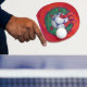 Festive Futbal in Wreath on Red Ping Pong Paddle