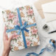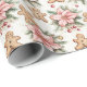Festive Gingerbread Men with Pink Poinsettias Wrapping Paper