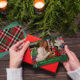 This stylish Christmas greeting features a festive illustrated girl finishing holiday shopping and decorating preparations. Real foil text and your family photo add beautiful finishing touches to this fun design. The back of this greeting is a holiday red and green plaid. Additional backs are available for this fun greeting card!